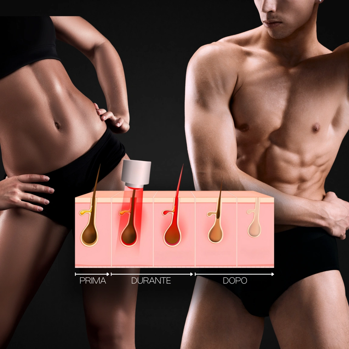 - Durante: applicazione mirata della tecnologia di epilazione, indolore e sicura.